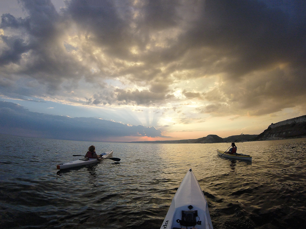 Не че те намалиха решителността ми да отида на морски тур с каяка, не че адреналинът още преди качването не беше висок. 🙂 Отидох, забавлявах се наистина много, удовлетворена съм, заредена съм с много нови впечатления и много осъзнавания за себе си, благодарна съм! И понеже Вселената е щедра, в рамките на по-малко от 24 часа имах не едно, а две морски преживявания – първо с каяк, а след това – и със сърф-ски.